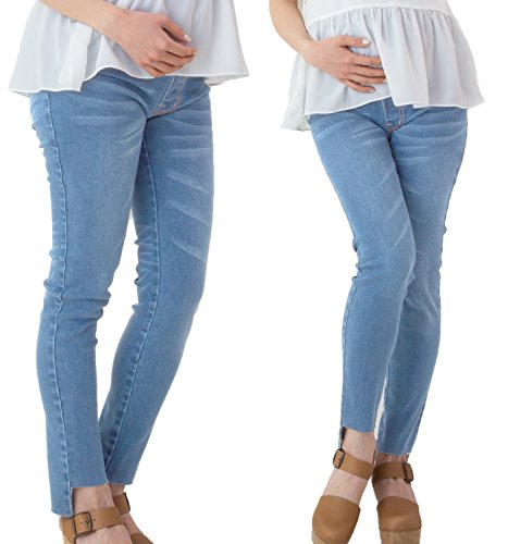Sweet Mommy 裾デザイン選べる スーパーストレッチ デニムスキニー お腹すっぽりコットンリブ 大きいサイズ バックギャザー スリムフィット ウエスト調節機能 ママボトム ズボン 春 夏 秋 産前産後 マタニティ【カットオフ】/ライトブルー/3L