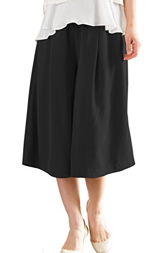 Sweet Mommy 上品ドレープ ガウチョ ツイルジョーゼット 7分丈 ウエストシャーリングリブ ストレッチコットン総裏地 ポケット付き 透けにくい 大きいサイズ ワイドパンツ 春 夏 ズボン オフィス 産前産後 マタニティ/ブラック/LL