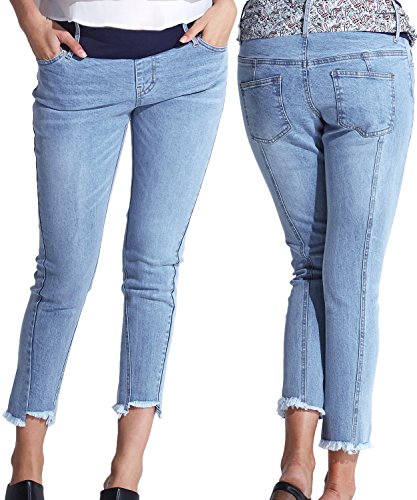 Sweet Mommy マタニティパンツ デニム ダメージタイプ選べる ローライズ ボトム 大きいサイズ 小さいサイズ 極太ウエストバンドでお腹支える コットン ポケットつき ズボン 産前産後/ライトブルー【カットオフ】/S