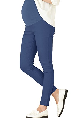 Sweet Mommy マタニティパンツ ボトム スキニー しっかり生地 スーパーストレッチ マジック美脚パンツ コットンリブ ウエスト調節機能 ポケット付き バックギャザーで背中浮かない ズボン 大きいサイズ 秋 冬 マタニティデニム マタニティ レギンスパンツ マタニティウェア デニム 産前産後 臨月 /ミディアムブルー/LL