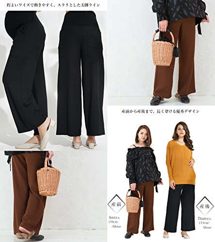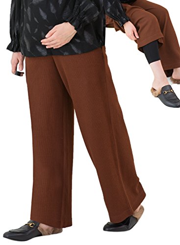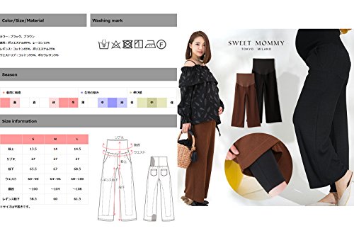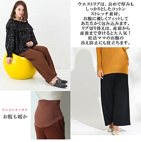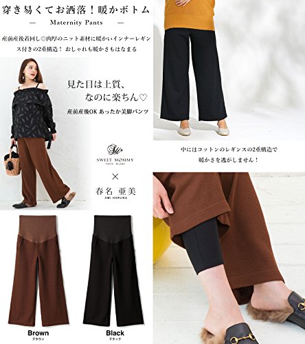 Sweet Mommy マタニティパンツ ボトム コットンレギンス付き ミラノリブワイドパンツ ウエストリブ ポケット付き ウエスト調節紐 大きいサイズ ズボン 春 秋 冬 産前産後 マタニティ/ブラウン/M
