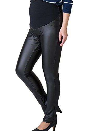 Sweet Mommy マタニティパンツ ボトム 裏起毛 たてよこ4WAYストレッチ ツイル/レザー調 スリムフィット ウエストリブ ウエスト調節機能 大きいサイズ ズボン 秋 冬 産前産後 マタニティ/ブラック/LL