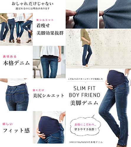 - 【大人気デニム!】産前産後OK!ストレッチ性抜群 スリムボーイフレンド