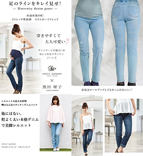Sweet Mommy マタニティパンツ ボーイフレンドデニム ウエスト調節機能 LL ライトブルー