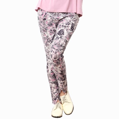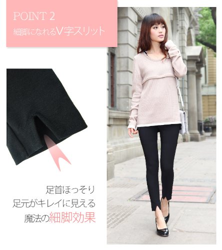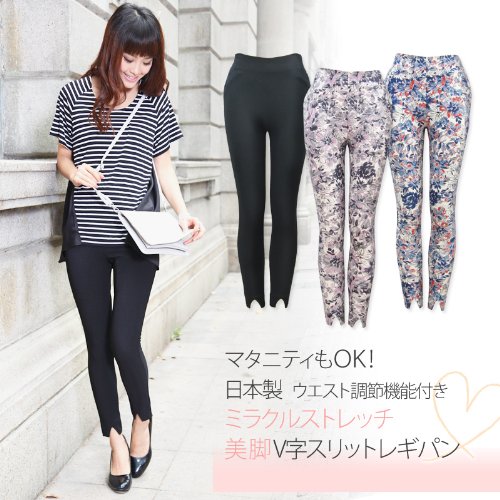 スウィートマミー ウエスト調節機能付き ミラクルストレッチ 美脚V字スリット レギパン M ピンク×グレー