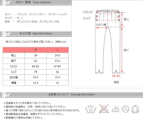 - サイズ:M(股上24,股下62,ウエスト63-83,ヒップ78,わたり幅24.5,裾幅11.5), L(24.5,63.5,67-87,82,25.5,12)