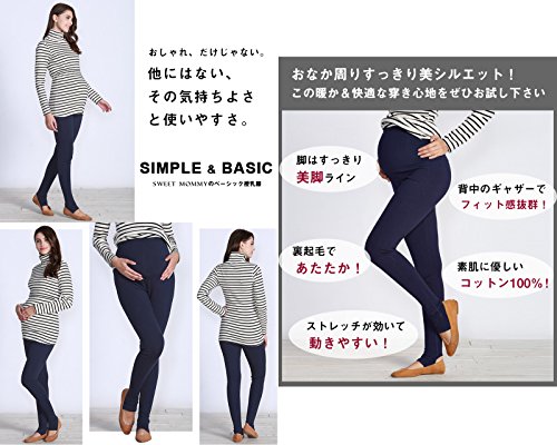 Sweet Mommy 丈が選べる ほんのり裏起毛ストレッチコットン 美脚 スリムフィット 秋冬 あったか 腹巻機能 ストレッチ素材 背中ギャザー マタニティ スパッツ トレンカ/M/ブラック