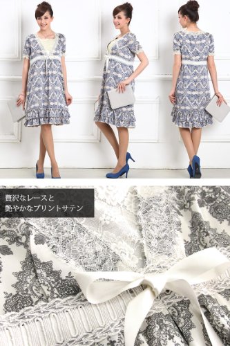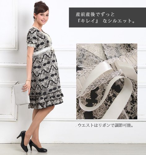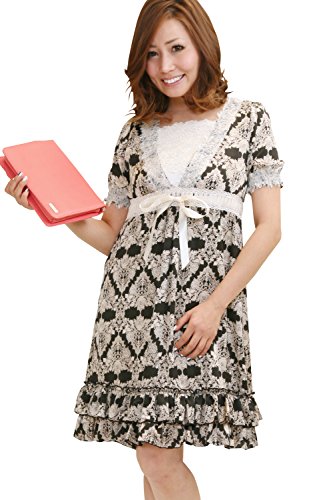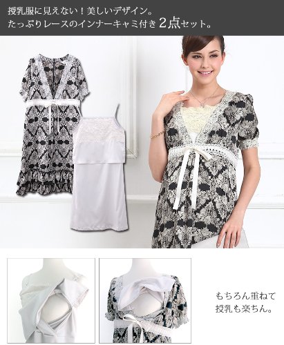 スウィートマミー (Sweet Mommy) エレガント レースプリント 授乳 ワンピース インナーワンピ 付き LL ブラック