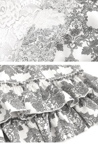 薄手のサテン素材にレース柄のプリントで、主役級の存在感。