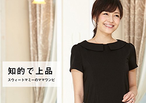Sweet Mommy 襟2WAY ママワンピ 授乳口付き 裏地付き Aライン パフ袖 半袖 大きいサイズ ワンピース お宮参り 上品 オフィス 結婚式 春 夏 産前産後 授乳服 マタニティ M ブラック