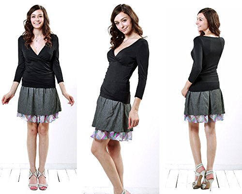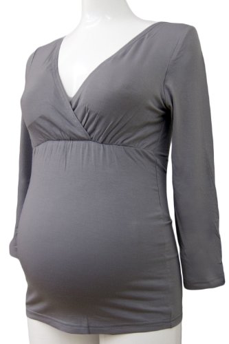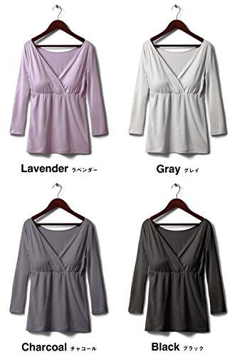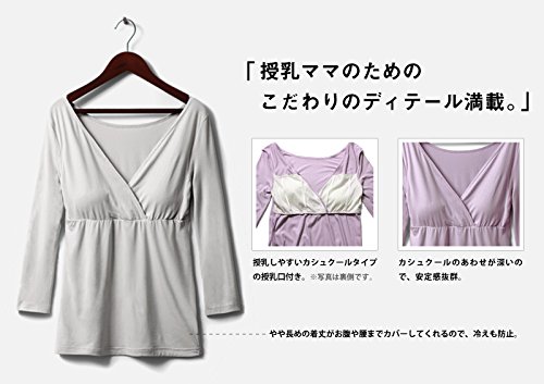スウィートマミー (Sweet Mommy) 竹繊維 授乳 インナー パッド付き カシュクール トップス 7分袖 授乳服 / マタニティウェア L チャコール