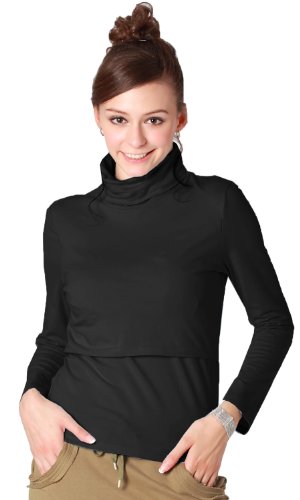 Sweet Mommy 【ソフトカップ付き】 プレミアムコットン タートル しっとり滑らか ハイネック 授乳 カットソー インナー 【冬クララ】 授乳服 / マタニティウェア S ブラック