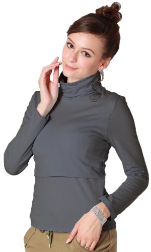 Sweet Mommy 【ソフトカップ付き】 プレミアムコットン タートル しっとり滑らか ハイネック 授乳 カットソー インナー 【冬クララ】 授乳服 / マタニティウェア S チャコール