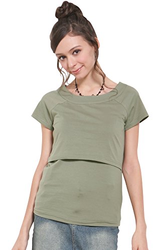 Sweet Mommy マタニティトップス 授乳服 授乳口付き Tシャツ デコルテすっきり ストレッチコットン 大きいサイズ 小さいサイズ スリムフィット 春 夏 半袖 産前産後/カーキ/L