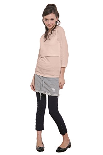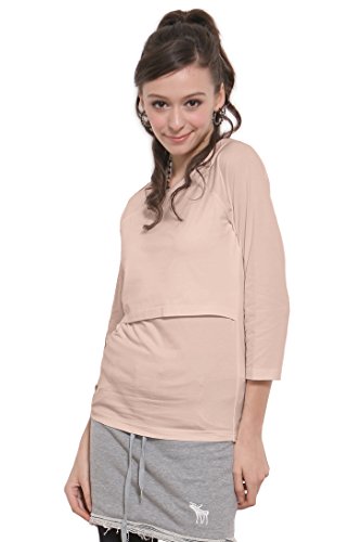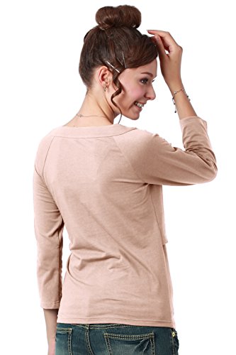 Sweet Mommy デコルテすっきり 授乳口付 Tシャツ ストレッチコットン すっきりネックライン ラグラン 【8分丈】 授乳トップス 授乳服 マタニティウェア S ピンク