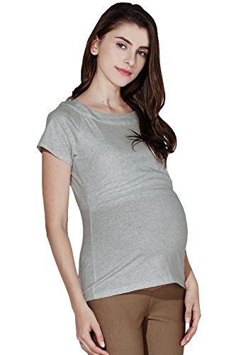 Sweet Mommy マタニティトップス 授乳服 デコルテすっきり ストレッチコットン 杢グレー L
