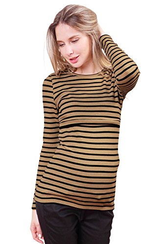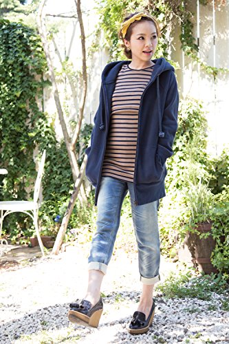 Sweet Mommy あったか 上質 裏起毛 丈長 ふんわり 柔らか スリムフィット ボーダー ロング丈 授乳 Tシャツ 美シルエット 秋冬ベーシック 授乳服 マタニティ M モカ×ネイビー