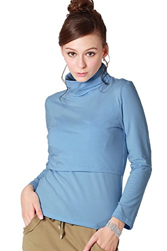 Sweet Mommy 【ソフトカップ付き】 プレミアムコットン タートル しっとり滑らか ハイネック 授乳 カットソー インナー 【冬クララ】 授乳服 / マタニティウェア S アンティークブルー