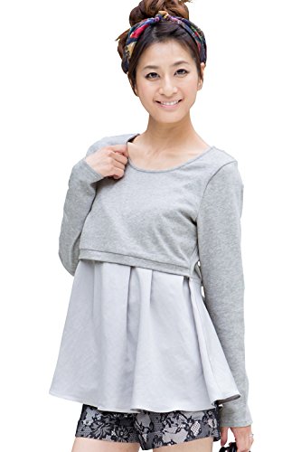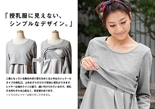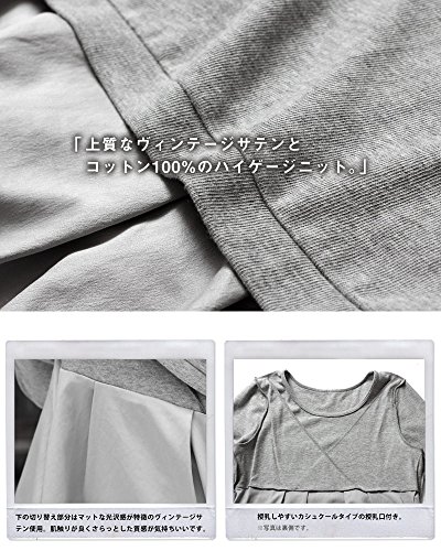 スウィートマミー (Sweet Mommy) コットン100%ニット サテン切替 ロングTシャツ 授乳服 / マタニティ M 杢グレー
