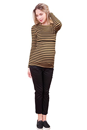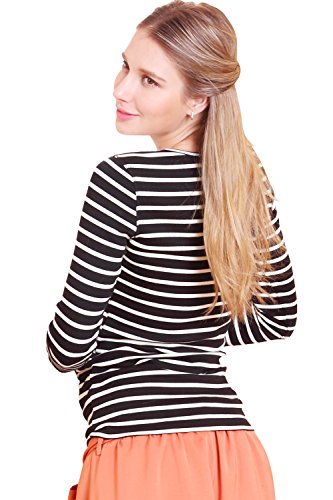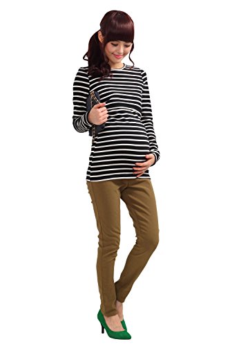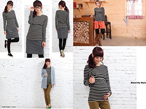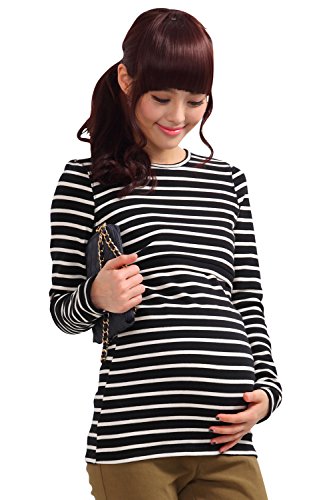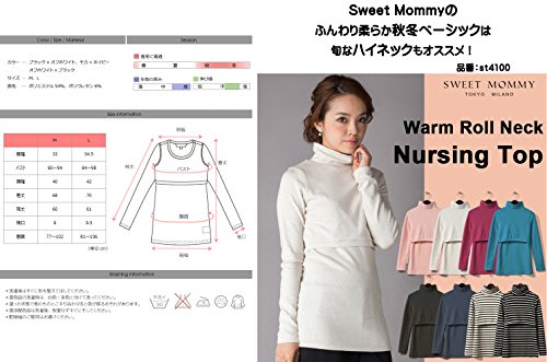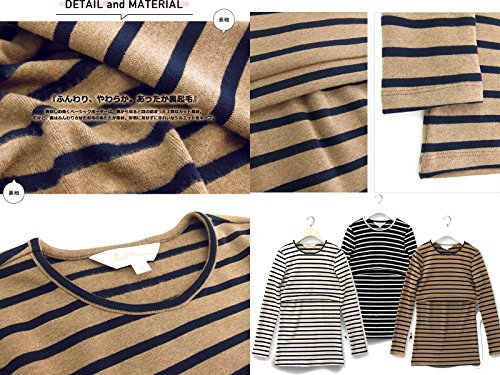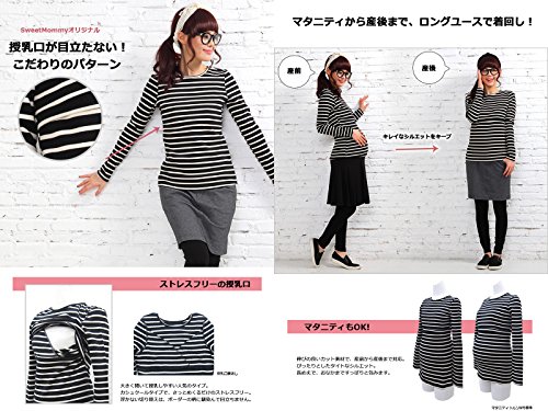 Sweet Mommy あったか 上質 裏起毛 丈長 ふんわり 柔らか スリムフィット ボーダー ロング丈 授乳 Tシャツ 美シルエット 秋冬ベーシック 授乳服 マタニティ M ブラック×オフホワイト