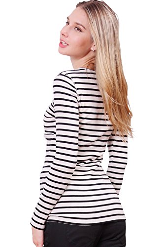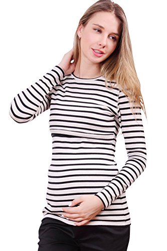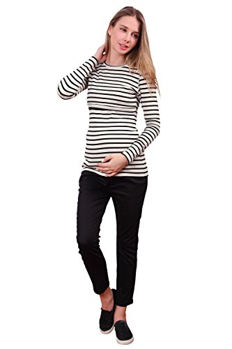Sweet Mommy あったか 上質 裏起毛 丈長 ふんわり 柔らか スリムフィット ボーダー ロング丈 授乳 Tシャツ 美シルエット 秋冬ベーシック 授乳服 マタニティ M オフホワイト×ブラック