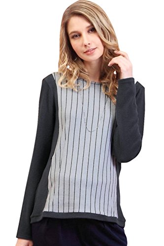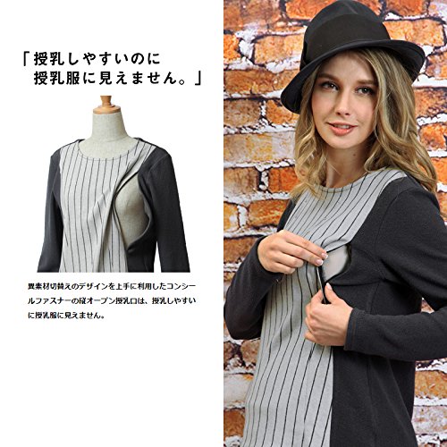 スウィートマミー (Sweet Mommy) ピンストライプ 切替 長袖 プルオーバー 授乳服 / マタニティ M ホワイト×チャコール