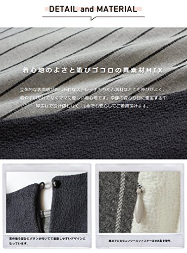 - 授乳機能付き:異素材切り替えのデザインを利用した、コンシールファスナーの縦オープン授乳口が付いています。