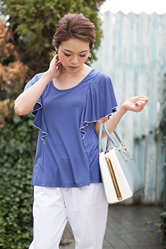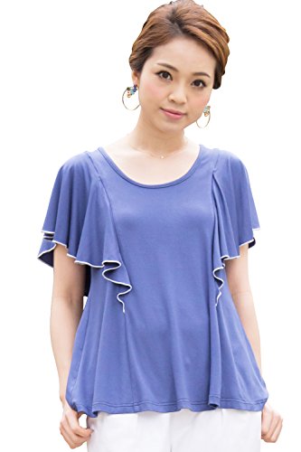 Sweet Mommy マタニティトップス 授乳口付き 授乳服 Tシャツ ラッフルスリーブ とろみ授乳カットソー 長め丈 きれいめ オフィス 春 夏 半袖 産前産後 L ブルー