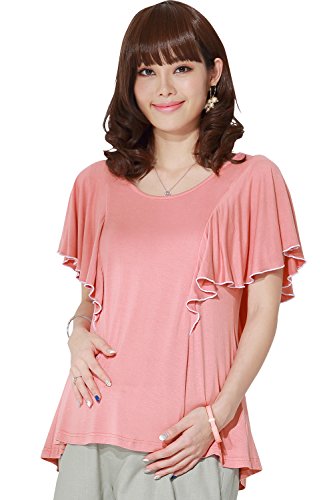 Sweet Mommy マタニティトップス 授乳口付き 授乳服 Tシャツ ラッフルスリーブ とろみ授乳カットソー 長め丈 きれいめ オフィス 春 夏 半袖 産前産後 M オレンジ