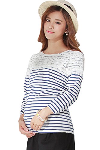 - 【大人気!レース×ボーダーのドッキングがおしゃれな授乳トップス】季節の変わり目や、春先から秋まで長く着られる8分袖が魅力。