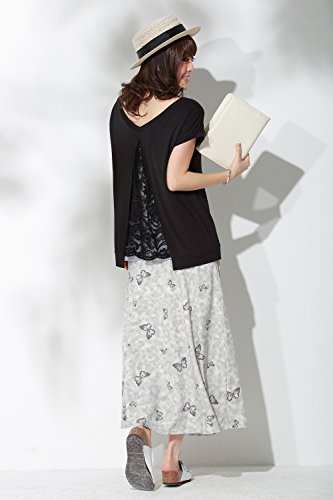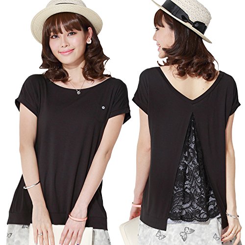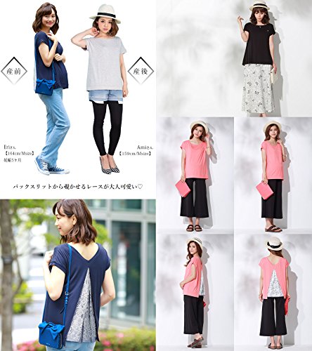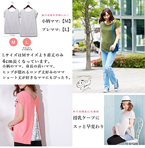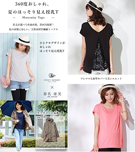 Sweet Mommy マタニティ 授乳服 トップス バックスリット レース×コットンストライプ L ブラック