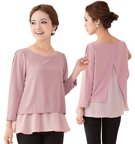 Sweet Mommy マタニティトップス 授乳服 授乳口付き 授乳ケープ 重ね着風 ジョーゼット×シフォン バックスリット Tシャツ 大きいサイズ オフィス フォーマル 春 夏 秋 長袖 産前産後 M サーモンピンク