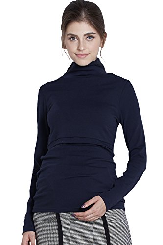 Sweet Mommy マタニティトップス 授乳服 授乳口付き タートルネック 上質裏起毛 あったか Tシャツ 大きいサイズ ハイネック ロング丈 ふんわり柔らか スリムフィット 無地はコットン 秋 冬 長袖 産前産後/ M ネイビー