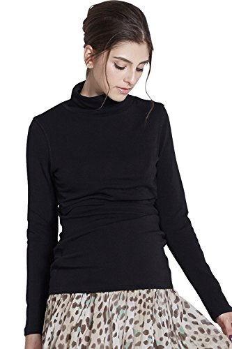 Sweet Mommy マタニティトップス 授乳服 授乳口付き タートルネック 上質裏起毛 あったか Tシャツ 大きいサイズ ハイネック ロング丈 ふんわり柔らか スリムフィット 無地はコットン 秋 冬 長袖 産前産後/ S ブラック