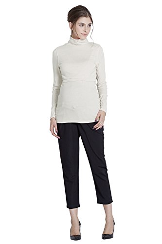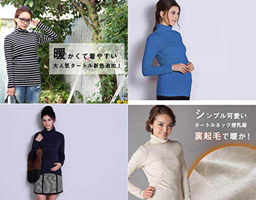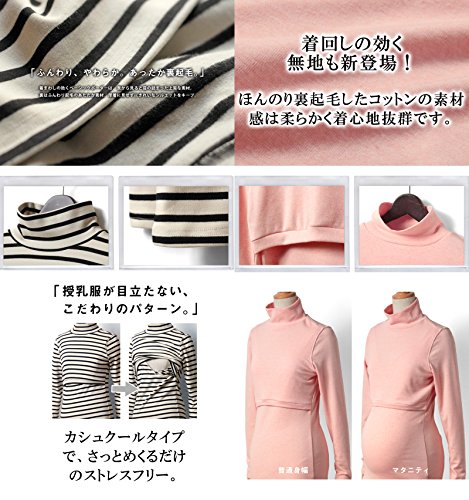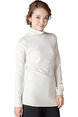 Sweet Mommy マタニティトップス 授乳服 授乳口付き タートルネック 上質裏起毛 あったか Tシャツ 大きいサイズ ハイネック ロング丈 ふんわり柔らか スリムフィット 無地はコットン 秋 冬 長袖 産前産後/ M オフホワイトミックス