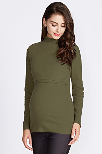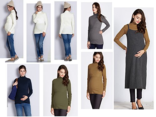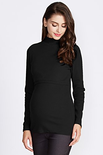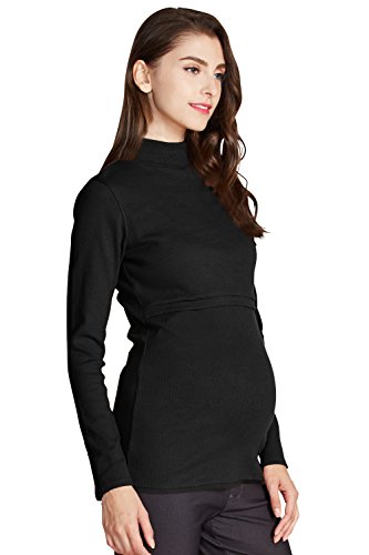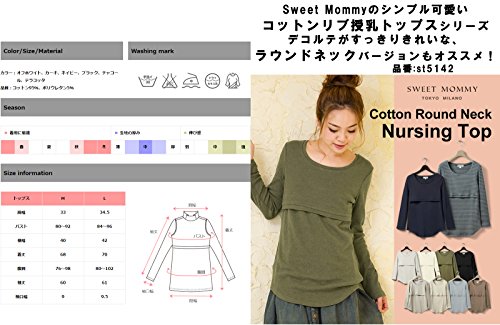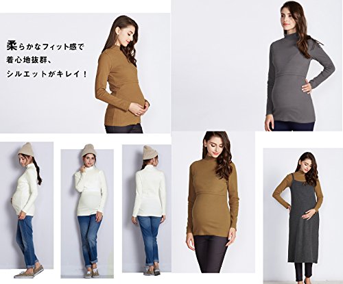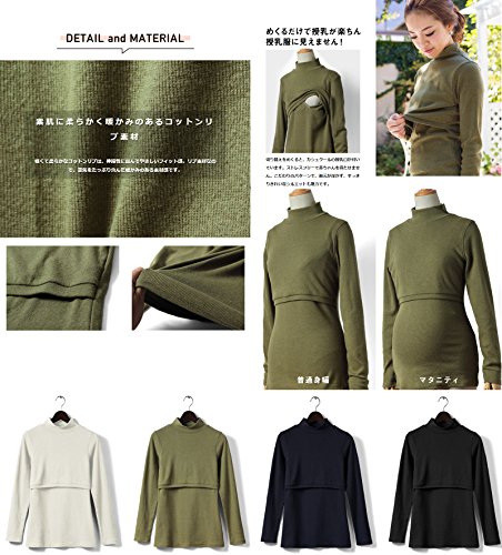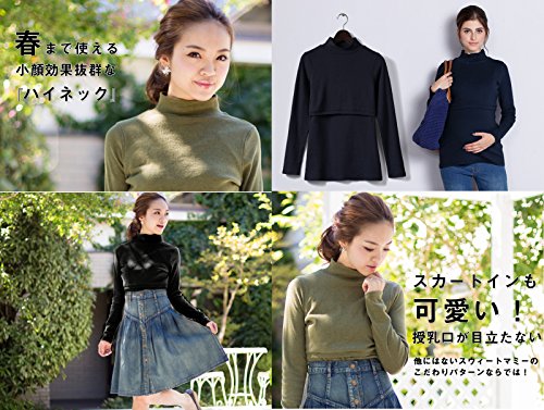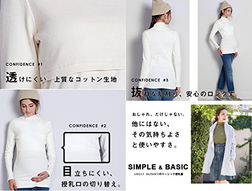 Sweet Mommy 柔らかコットン リブ素材 ボトルネック 軽フィット ハイネック ロング丈 シンプル 授乳 トップス カットソー 授乳服 マタニティ/ M ブラック
