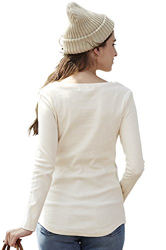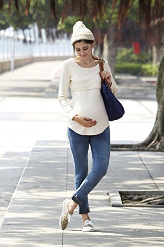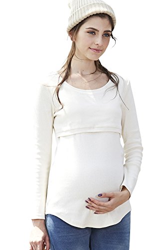 Sweet Mommy 柔らかコットン リブ素材 軽フィット すっきりデコルテ ロング丈 シンプル 授乳 トップス カットソー 授乳服 マタニティ L アイボリー