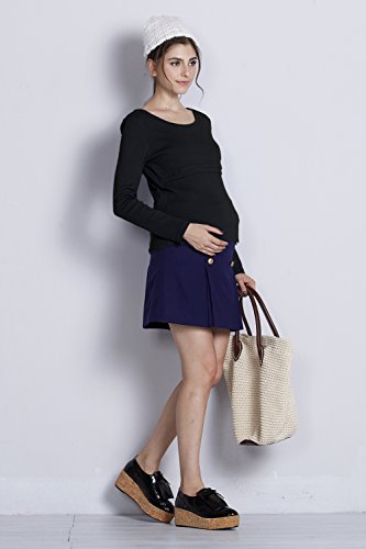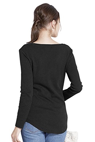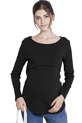 Sweet Mommy 柔らかコットン リブ素材 軽フィット すっきりデコルテ ロング丈 シンプル 授乳 トップス カットソー 授乳服 マタニティ L ブラック