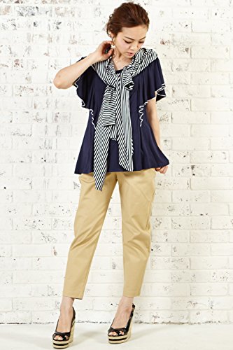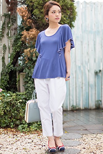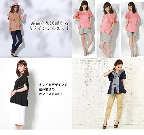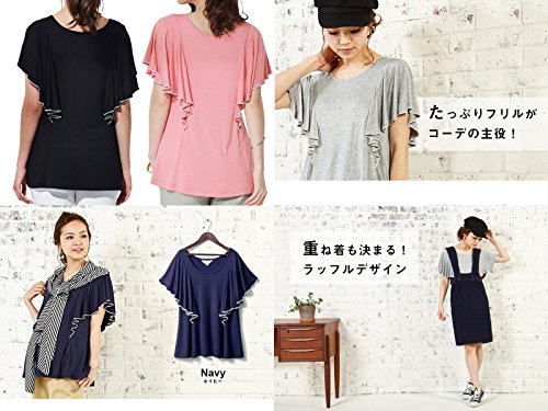 Sweet Mommy マタニティトップス 授乳口付き 授乳服 Tシャツ ラッフルスリーブ とろみ授乳カットソー 長め丈 きれいめ オフィス 春 夏 半袖 産前産後 大きいサイズ L ネイビー