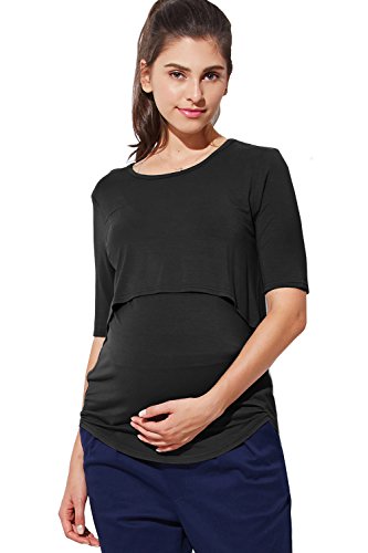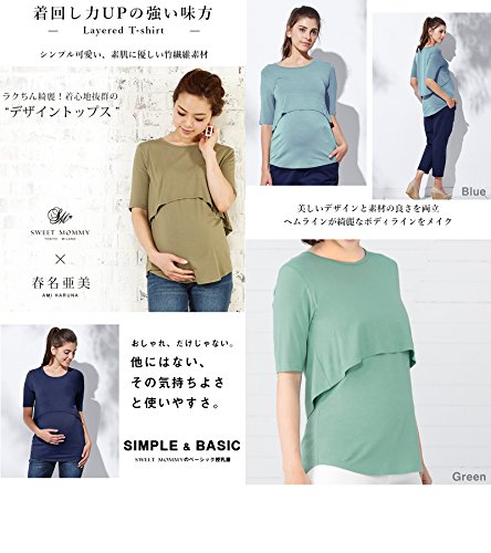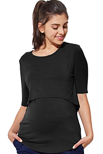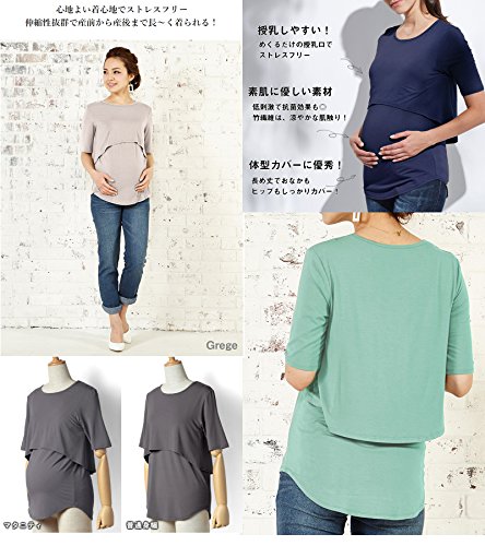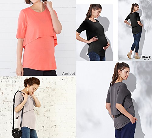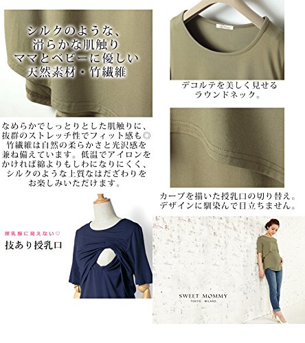 Sweet Mommy マタニティトップス 授乳服 なめらか竹繊維 授乳口付き 授乳トップス Tシャツ バックロング 長め丈 大きいサイズ 小さいサイズ 5分丈 春 夏 半袖 産前産後 L ブラック