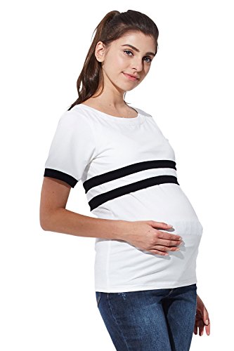 スウィートマミー (Sweet Mommy) Wライン デザインTシャツ M ホワイト 授乳服 / マタニティ