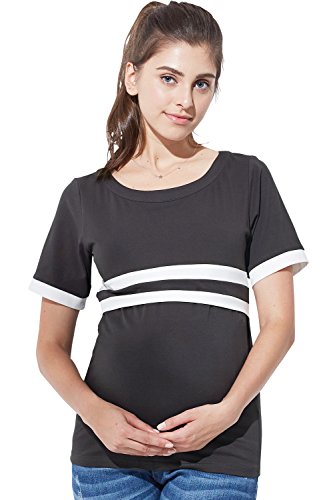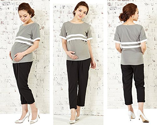 スウィートマミー (Sweet Mommy) Wライン デザインTシャツ M チャコール 授乳服 / マタニティ
