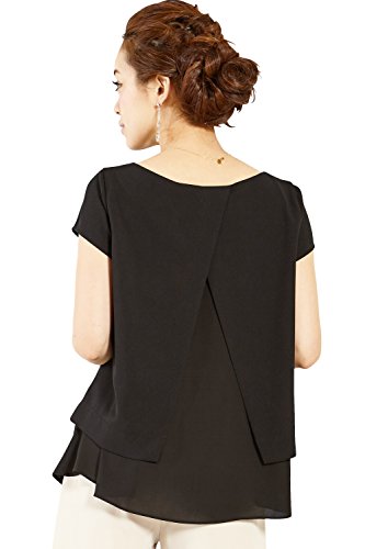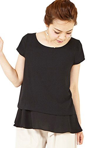 Sweet Mommy ジョーゼット×シフォン 重ね着風 授乳トップス キャップスリーブ レーヨン裏地 長め丈 ラウンドネック マット素材 上品 オフィス 産前産後 授乳服 マタニティ L ブラック