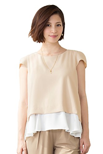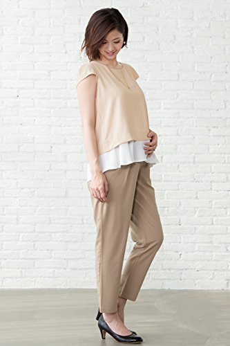 Sweet Mommy ジョーゼット×シフォン 重ね着風 授乳トップス キャップスリーブ レーヨン裏地 長め丈 ラウンドネック マット素材 上品 オフィス 産前産後 授乳服 マタニティ L ライトベージュ