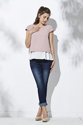 Sweet Mommy マタニティトップス 授乳服 バックスリット ジョーゼット 半袖・L スモーキーピンク