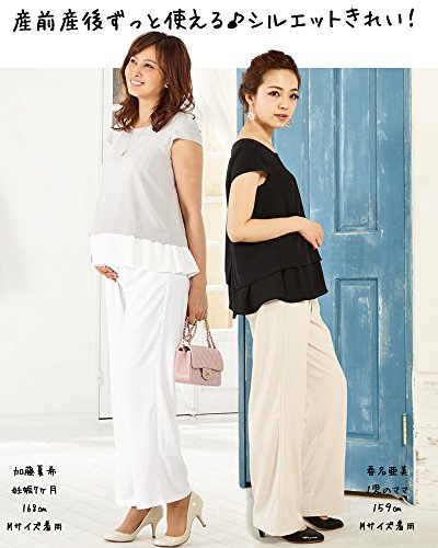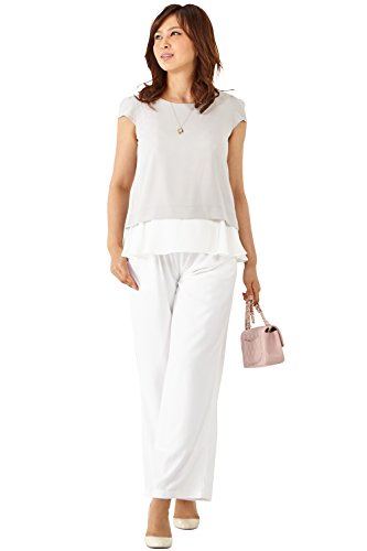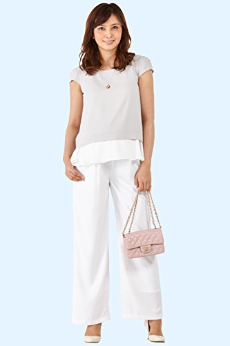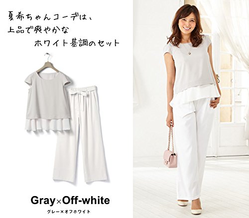 スウィートマミー (Sweet Mommy) 【加藤夏希プロデュース特別セット】 ジョーゼットセットアップ (レイヤードトップス×ワイドパンツセット) マタニティ/授乳服 M グレー×ホワイト