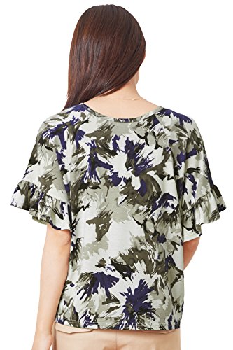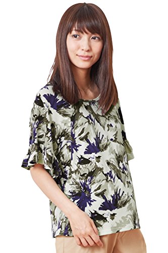 - 夏にぴったり!ボタニカルプリント フリル袖 授乳Tシャツ