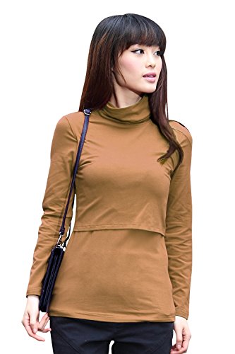 Sweet Mommy プレミアムコットンベア天竺 タートル しっとり滑らか ストレッチフィット すっきりシルエット ハイネック 授乳 カットソー インナー 【冬クララ】 マタニティ 授乳服/キャメル/S