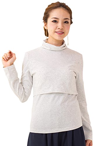Sweet Mommy プレミアムコットンベア天竺 タートル しっとり滑らか ストレッチフィット すっきりシルエット ハイネック 授乳 カットソー インナー 【冬クララ】 マタニティ 授乳服/杢ホワイト/M