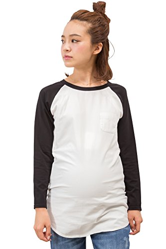 Sweet Mommy ラグラン 9分 コットン 大人カジュアル ロング丈 フィット Tシャツ 長袖 トップス シンプル 授乳服 マタニティ/M/オフホワイト×ブラック